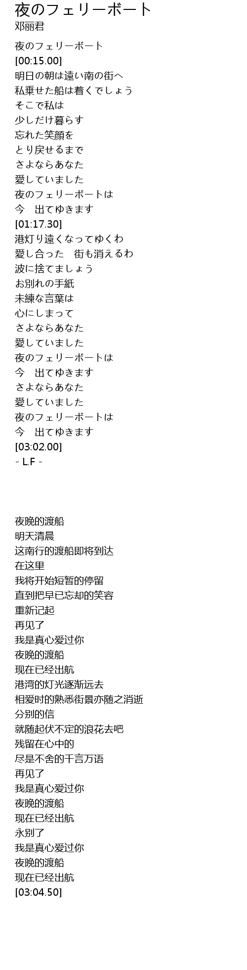 | [02:45.20] | 夜のフェリーボートは |
