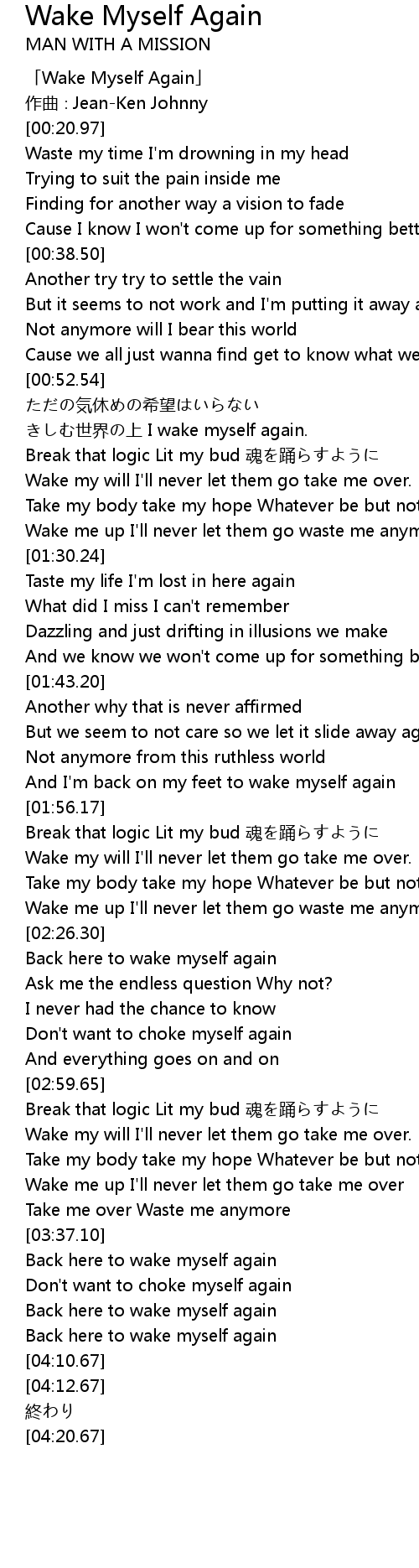 | [00:00.97] | 「Wake Myself Again」 |