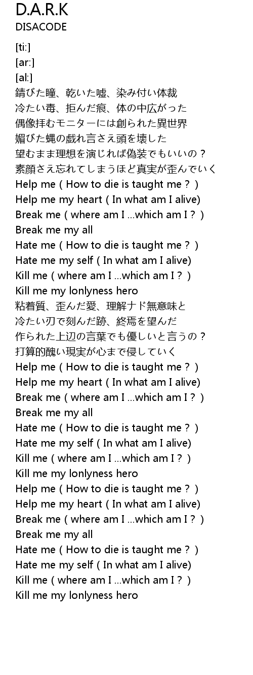 | [03:48.19] | Help me(How to die is taught me?) |