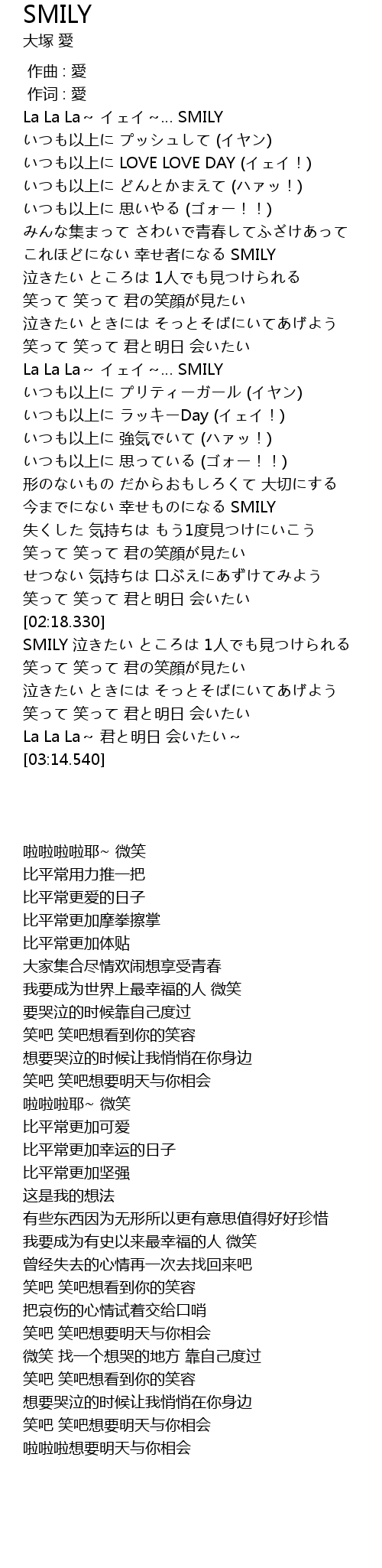 | [00:07.110] | La La La~ イェイ~… SMILY |