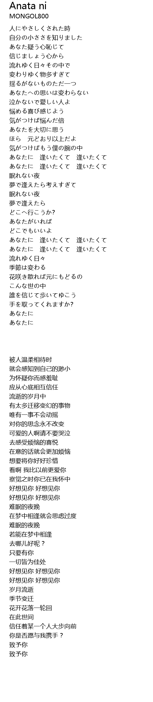 | [01:31.72] | あなたに 逢いたくて 逢いたくて |