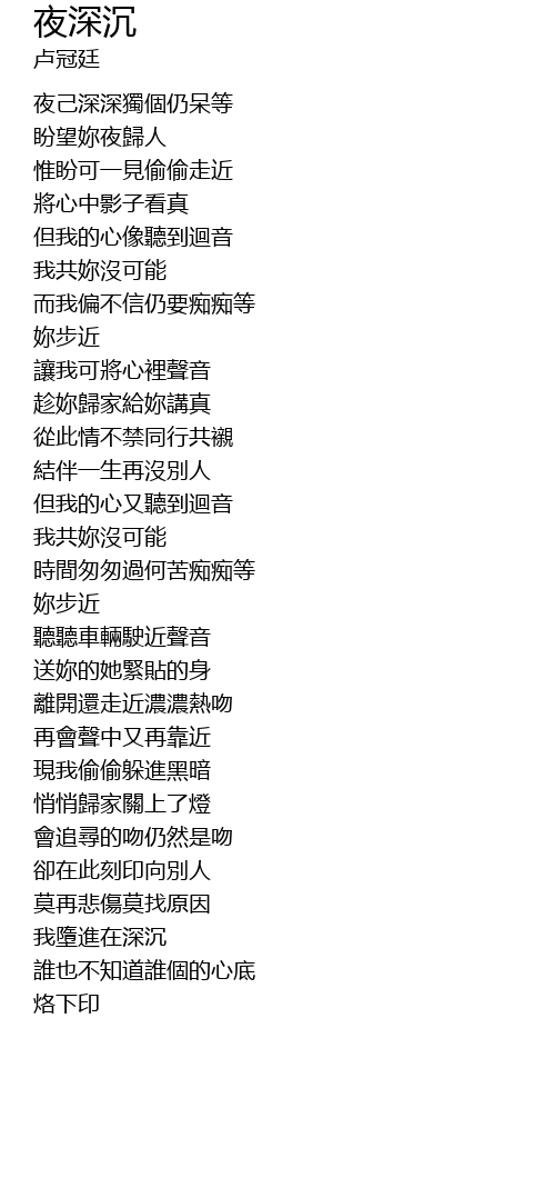 | [00:29.49] | 夜己深深獨個仍呆等 |