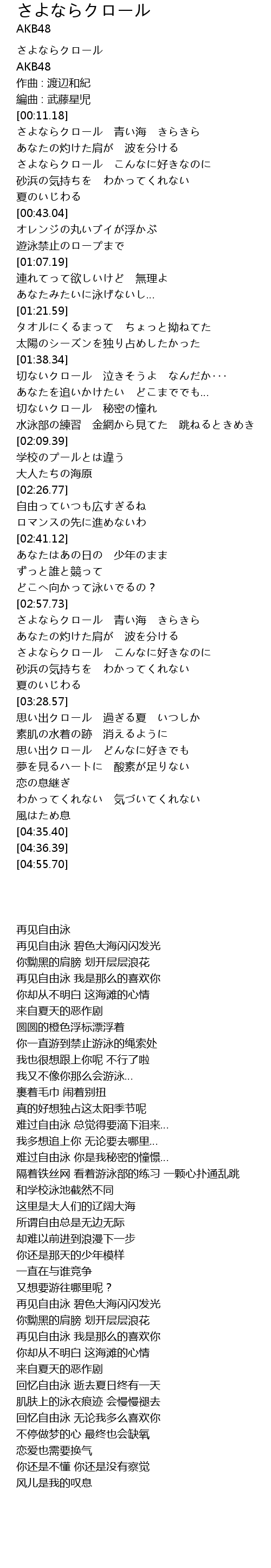 | [02:59.15] | さよならクロール 青い海 きらきら |