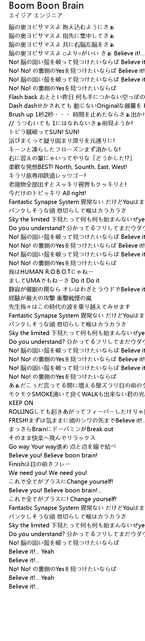 | No! 脳の固い殻を破って見つけたいならば Believe it!... | |