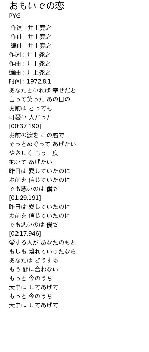 | [00:00.000] | 作词 : 井上堯之 |