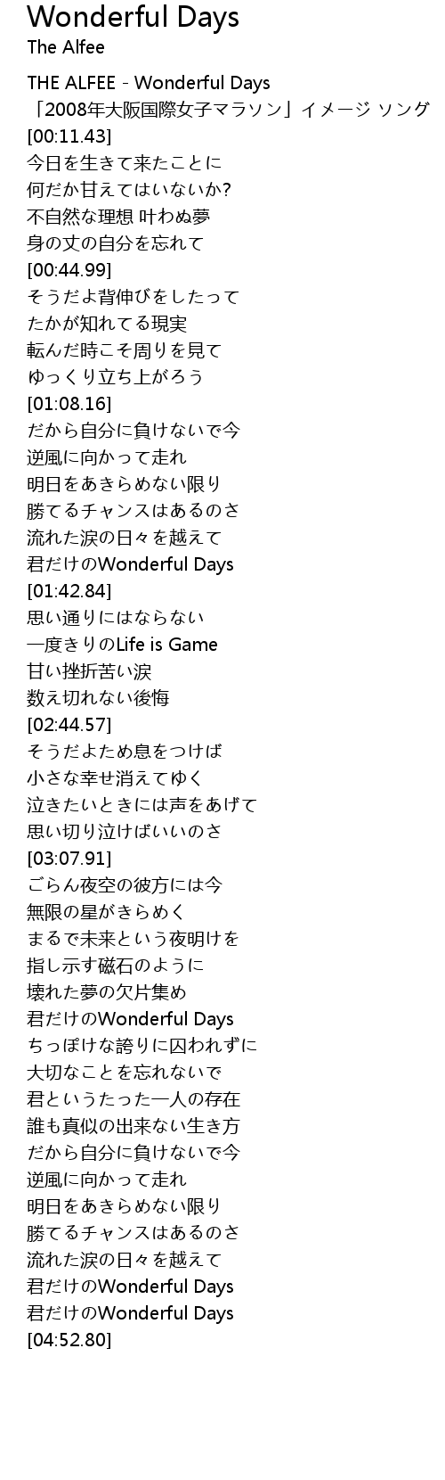 | [00:01.43] | THE ALFEE - Wonderful Days |