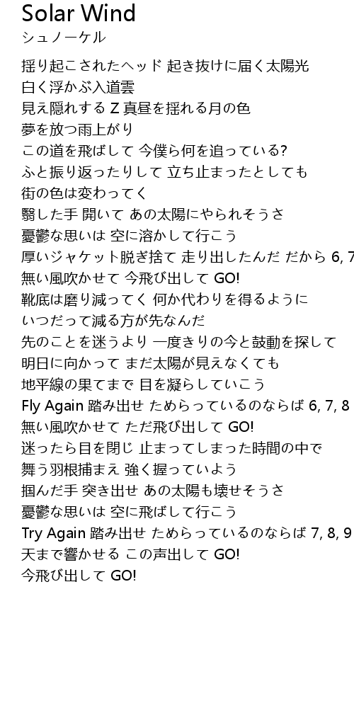 | 掴んだ手 突き出せ あの太陽も壊せそうさ | |