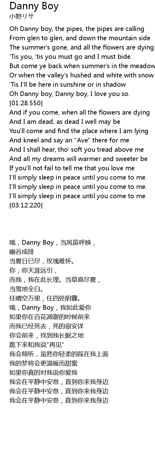 Oh Danny boy, Danny boy, I love you so. |