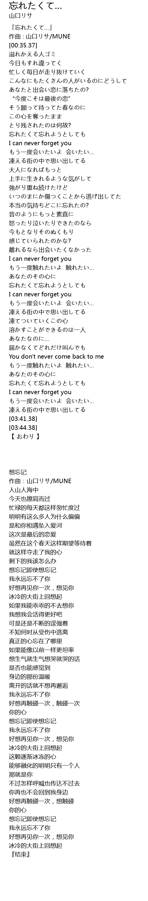 | [03:19.11] | 忘れたくて忘れようとしても |