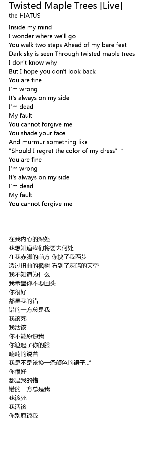 | 歌曲 | Twisted Maple Trees [Live] |