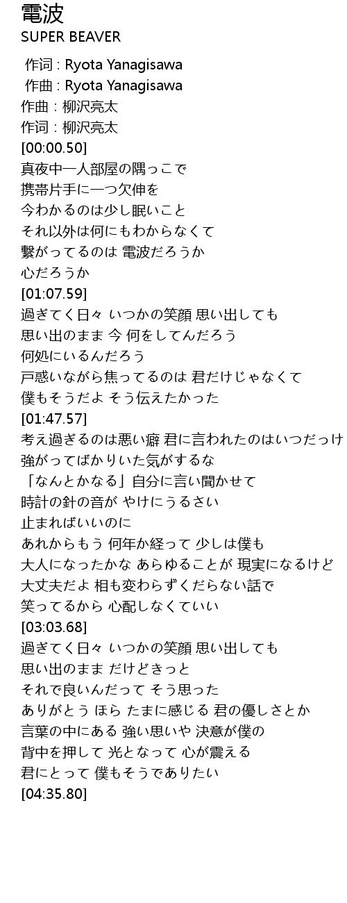 | [00:00.000] | 作词 : Ryota Yanagisawa |