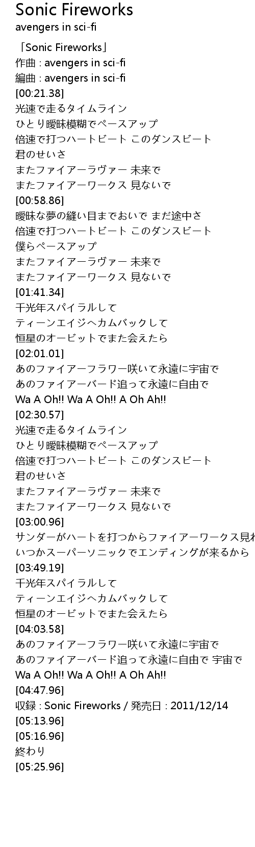 | [00:01.38] | 「Sonic Fireworks」 |