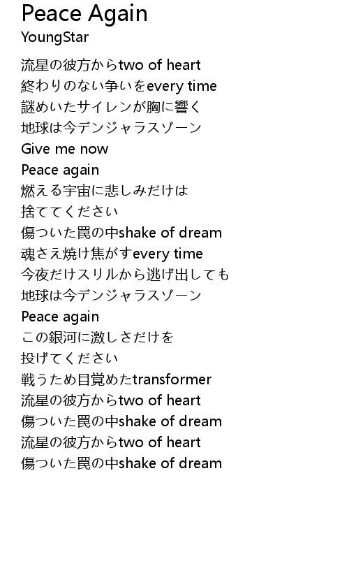 | 歌曲 | Peace Again |