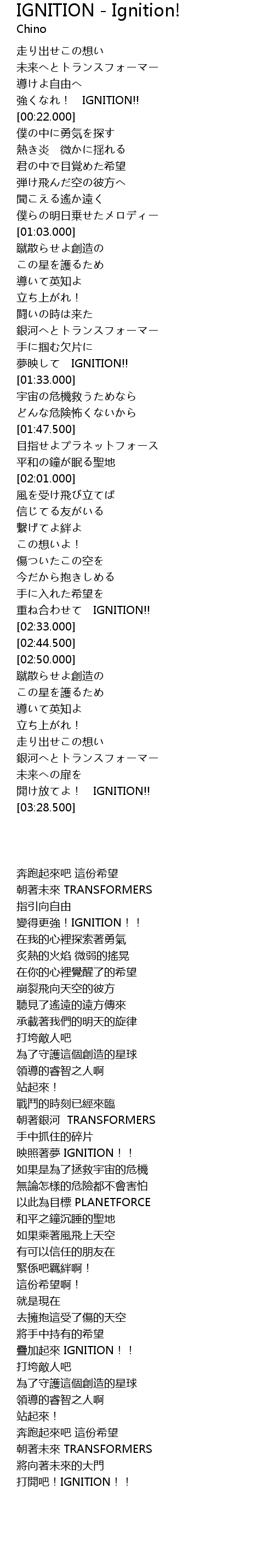 | [02:23.500] | 疊加起來 IGNITION!! |