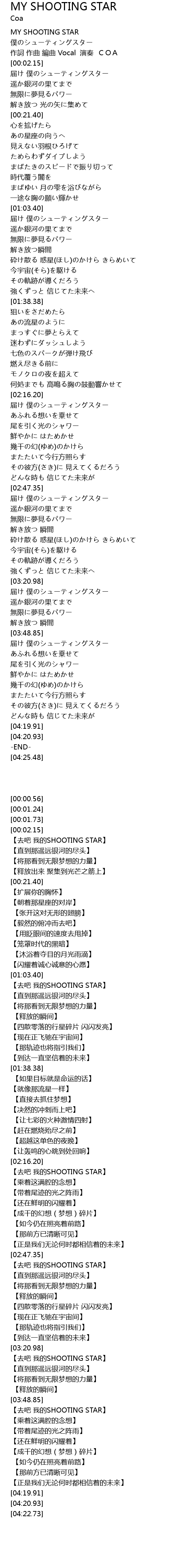 | [02:16.22] | 【去吧 我的SHOOTING STAR】 |