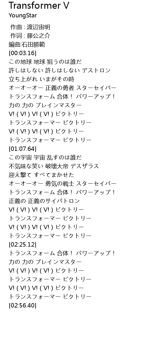 | [00:59.97] | トランスフォーマー ビクトリー |