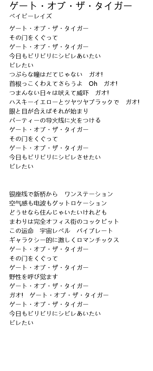 ゲート・オブ・ザ・タイガー 歌词