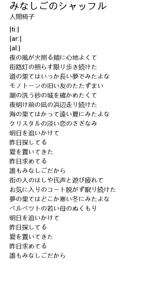 | [02:12.85] | 街の人のはしや氏声と遊び疲れて |