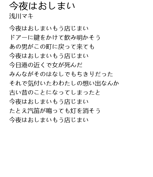 | 今夜はおしまいもう店じまい | |