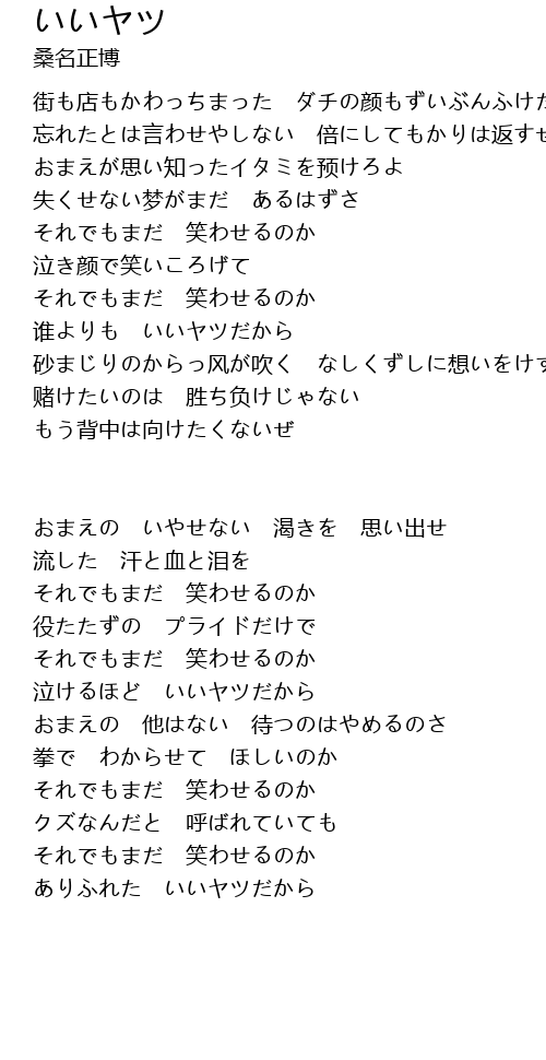 | 街も店もかわっちまった ダチの颜もずいぶんふけた | |