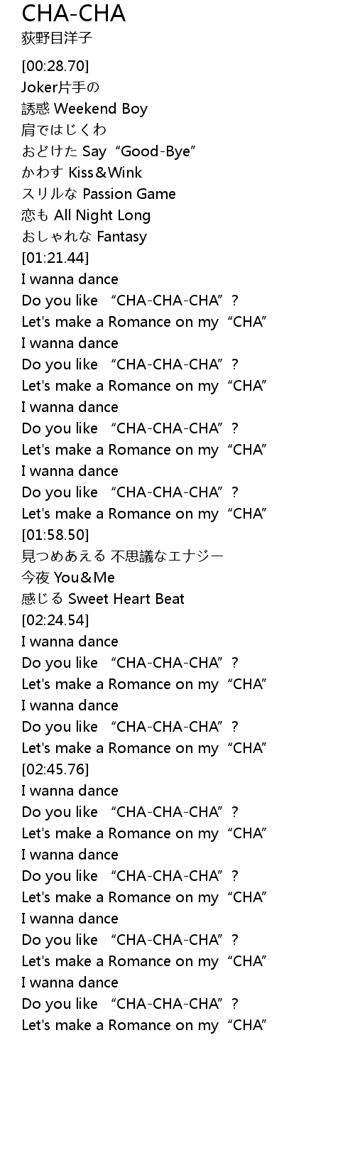 | [02:40.11] | Do you like “CHA-CHA-CHA”? |