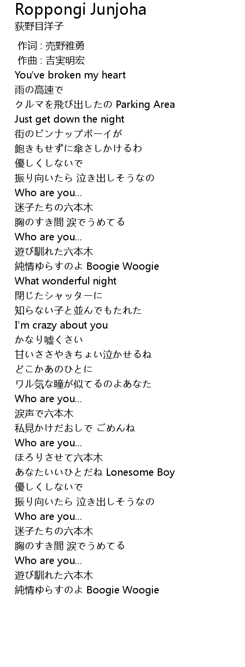| 歌曲 | Roppongi Junjoha |