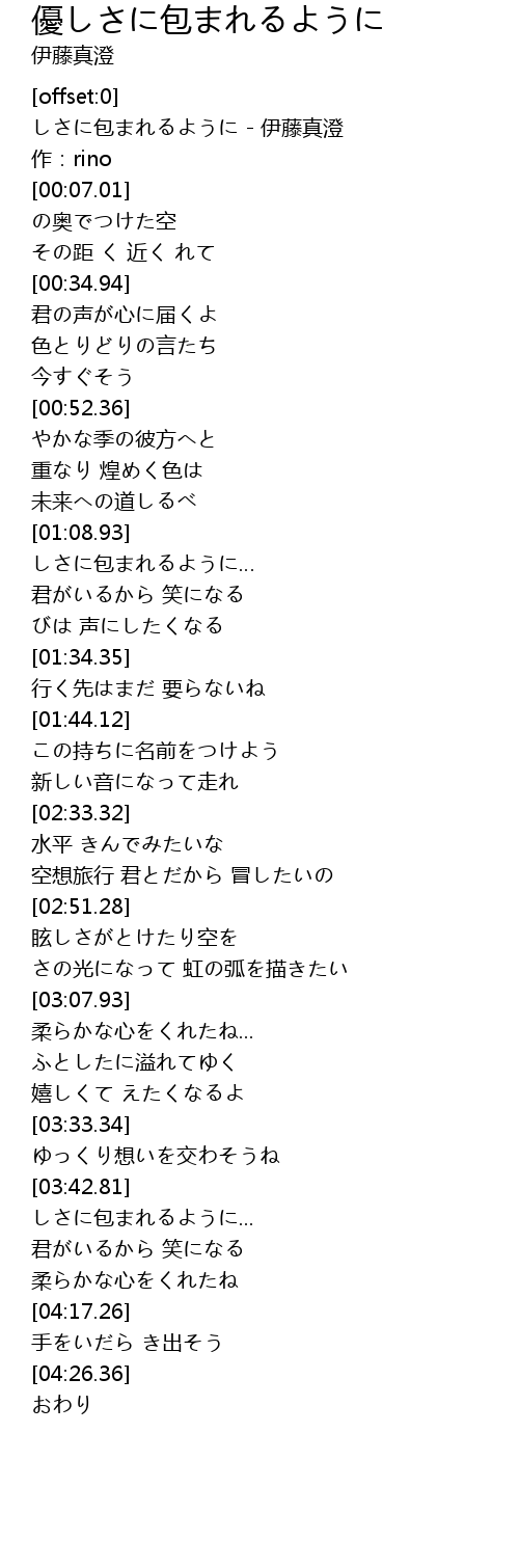 | [00:00.51] | しさに包まれるように - 伊藤真澄 |