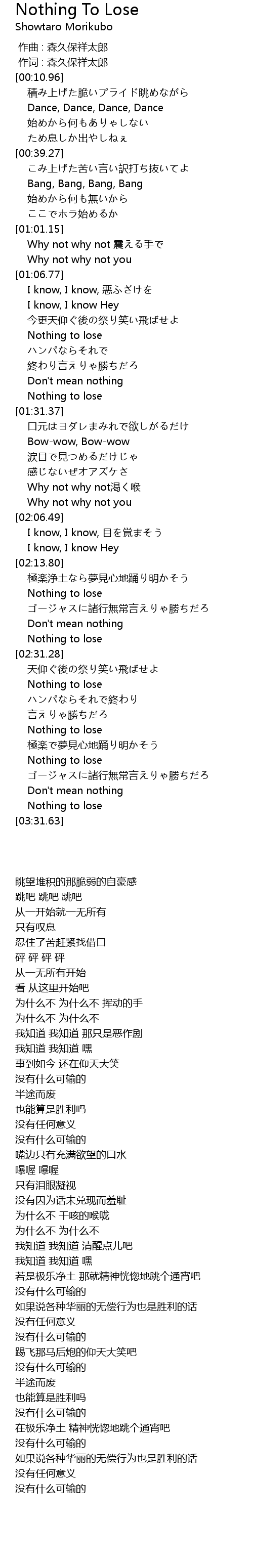 | [02:28.96] | Nothing to lose |