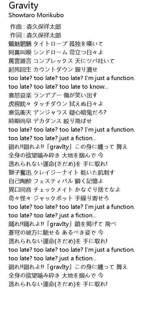 | [02:54.05] | too late? too late? too late? I' m just a function. |