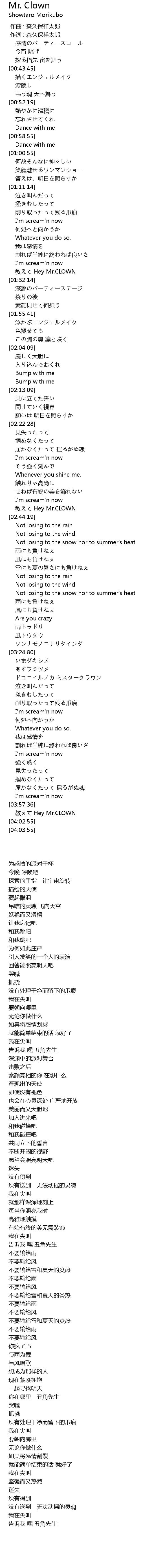 | [03:57.73] | 教えて Hey Mr.CLOWN |