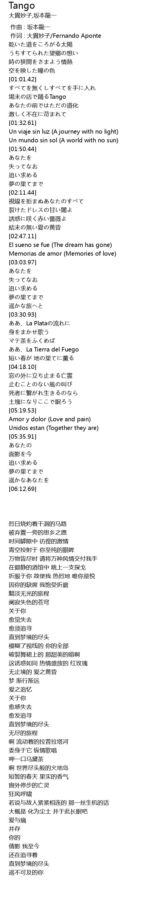 | [01:08.87] | chǎng mò diàn yǒng Tango |