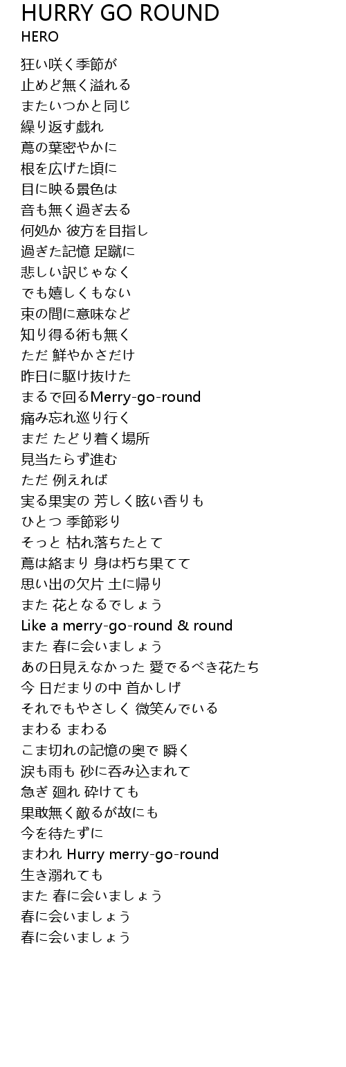| 歌曲 | HURRY GO ROUND |