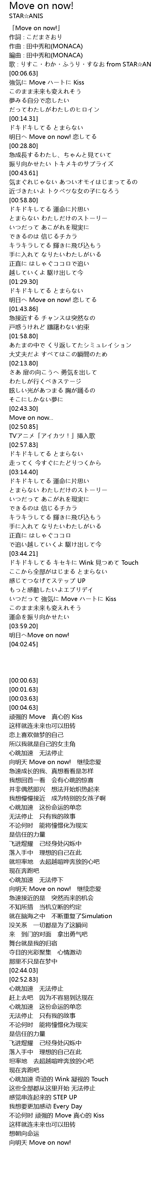 | [01:37.54] | 明日へ Move on now! 恋してる |