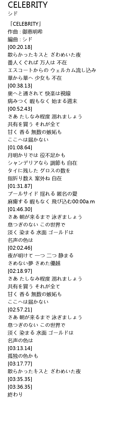 | [00:23.18] | 散らかったキスと ざわめいた夜 |