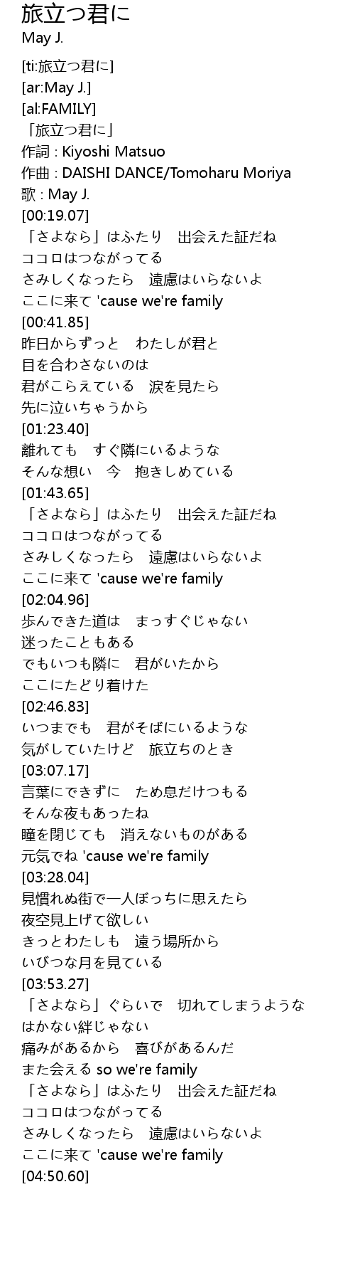| [03:23.82] | 元気でね 'cause we're family |