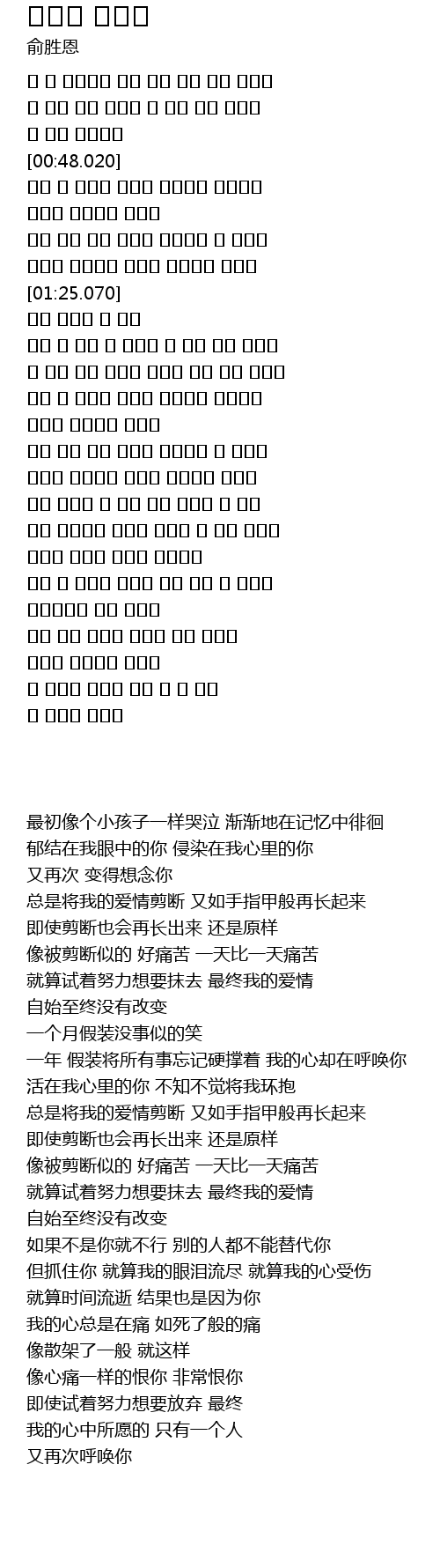 | [02:17.840] | 像被剪断似的 好痛苦 一天比一天痛苦 |