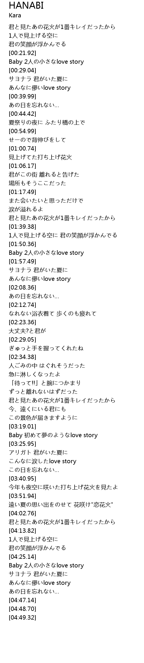 | [03:52.76] | 遠い夏の思い出をのせて 花咲け"恋花火" |