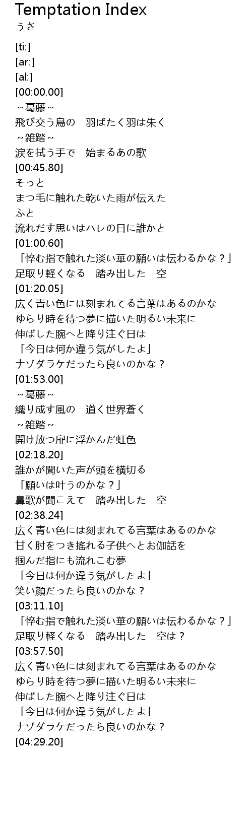 | 歌曲 | Temptation Index |
