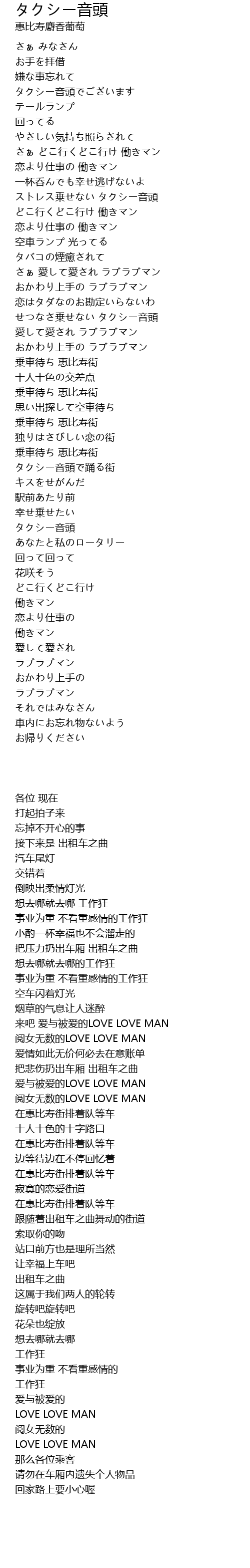 | [00:53.97] | ストレス乗せない タクシー音頭 |