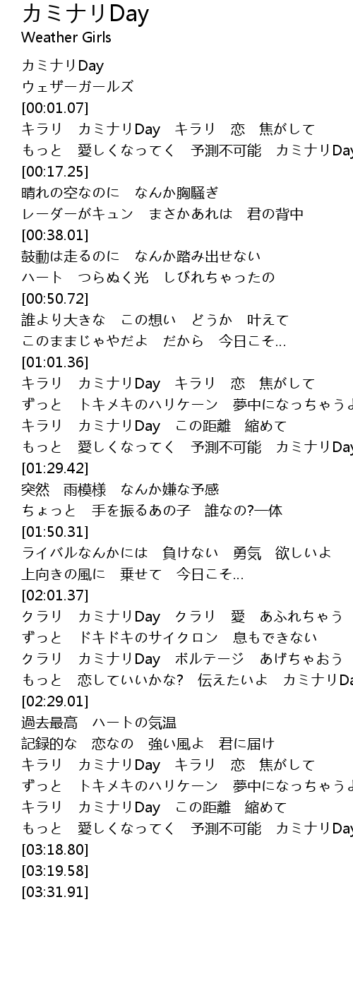 | [03:11.84] | もっと 愛しくなってく 予測不可能 カミナリDay |