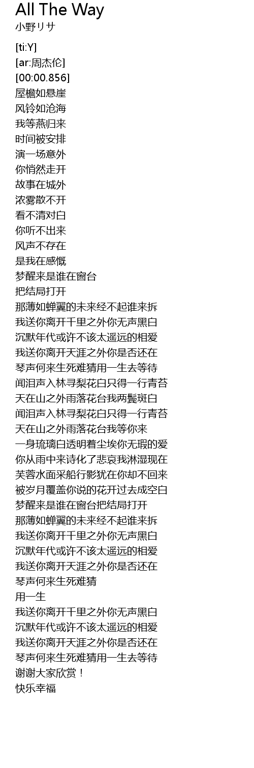 | 歌曲 | All The Way |
