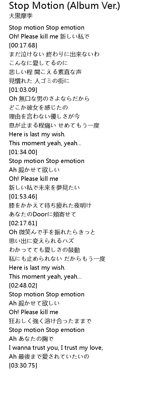 | [00:10.09] | Oh! Please kill me 新しい私で |