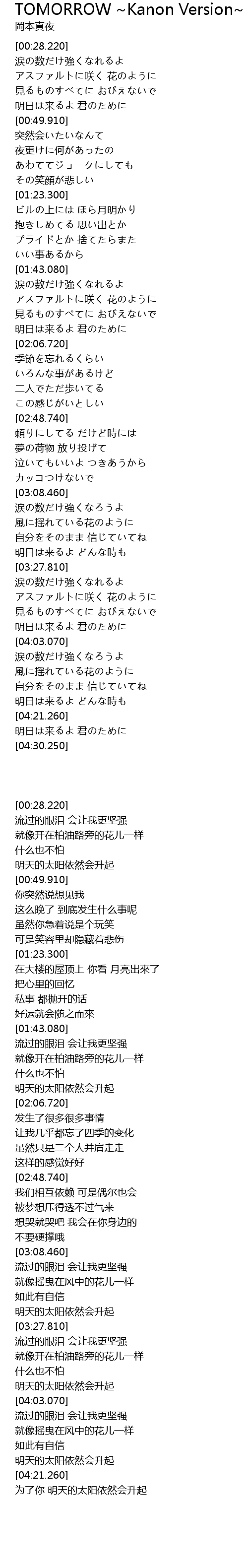 | [04:03.510] | 涙の数だけ強くなろうよ |