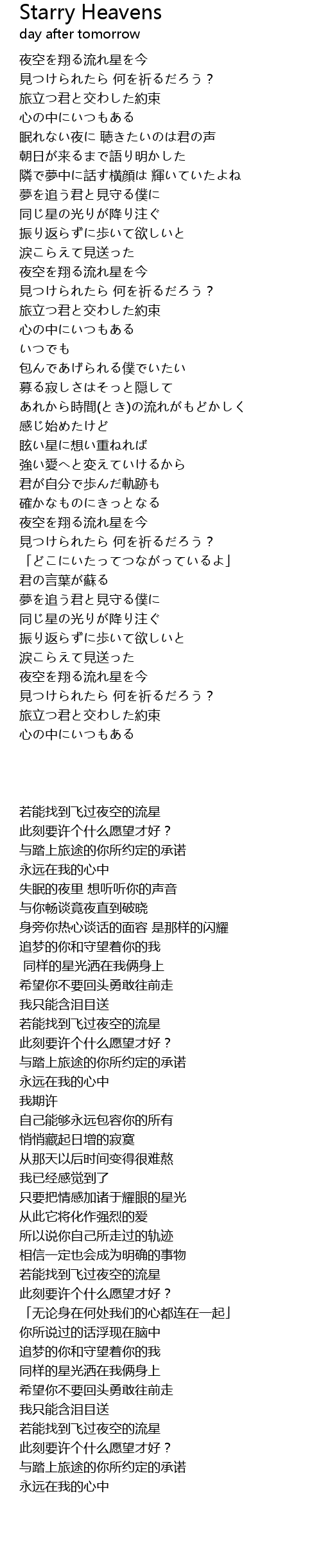 | [03:49.560] | 夜空を翔る流れ星を今 |
