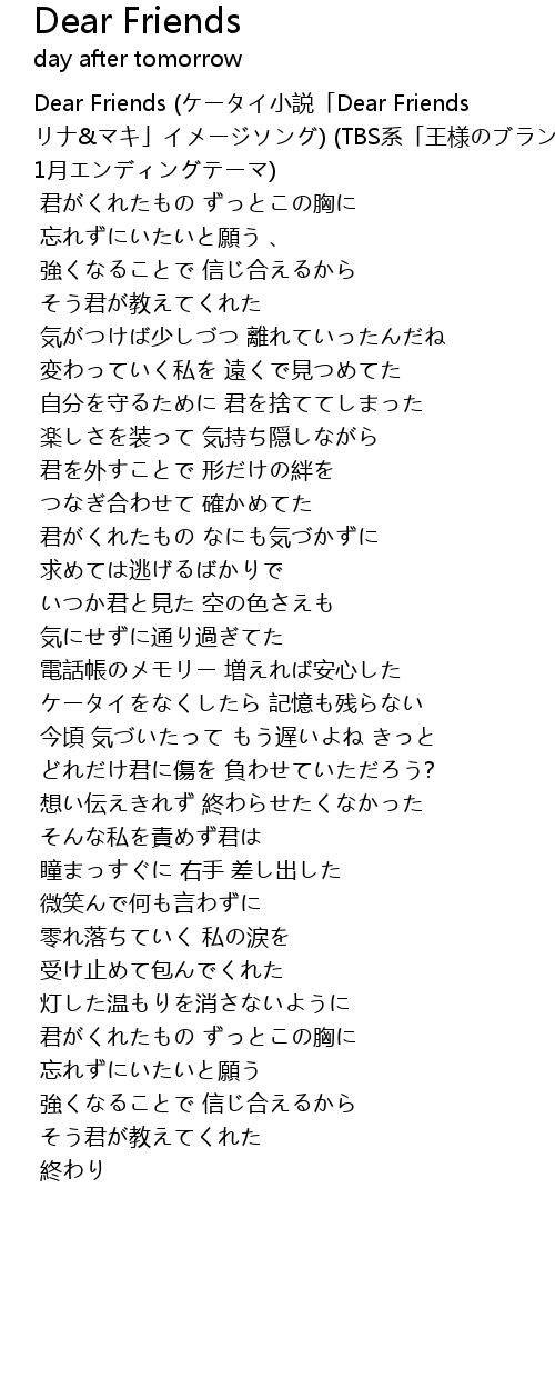 | 歌曲 | Dear Friends |