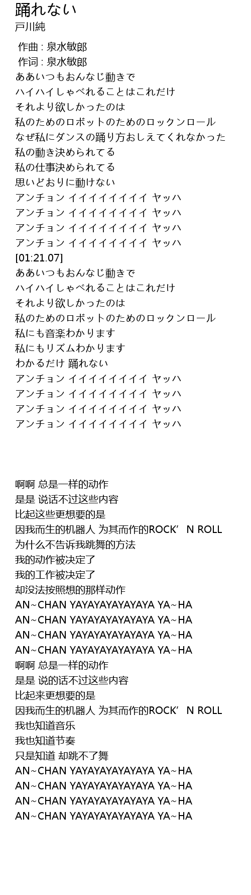 | [02:19.38] | AN~CHAN YAYAYAYAYAYAYA YA~HA |
