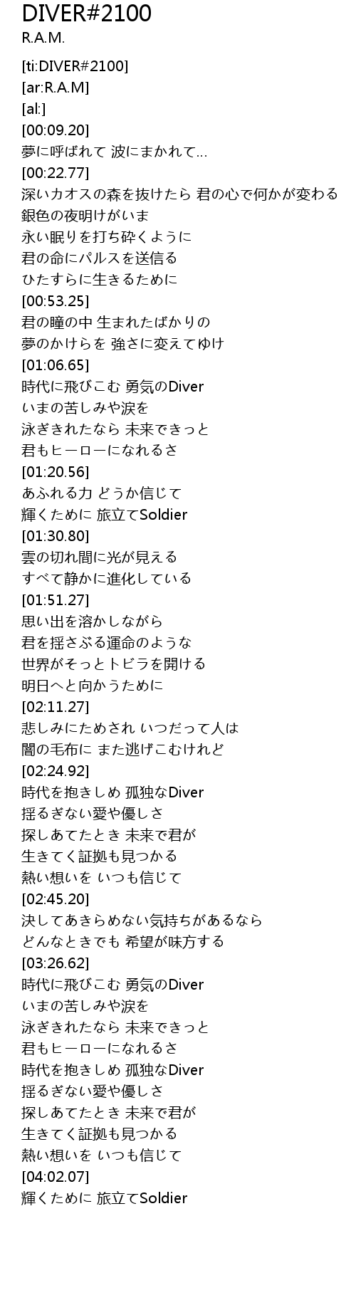 | [03:42.66] | 時代を抱きしめ 孤独なDiver |