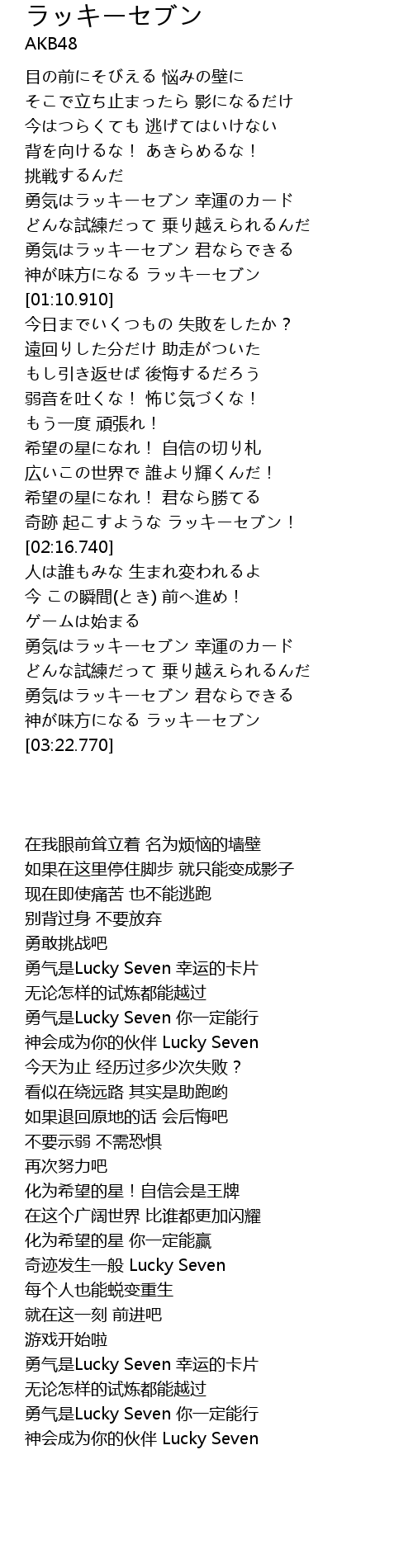 | [02:53.400] | 勇气是Lucky Seven 幸运的卡片 |
