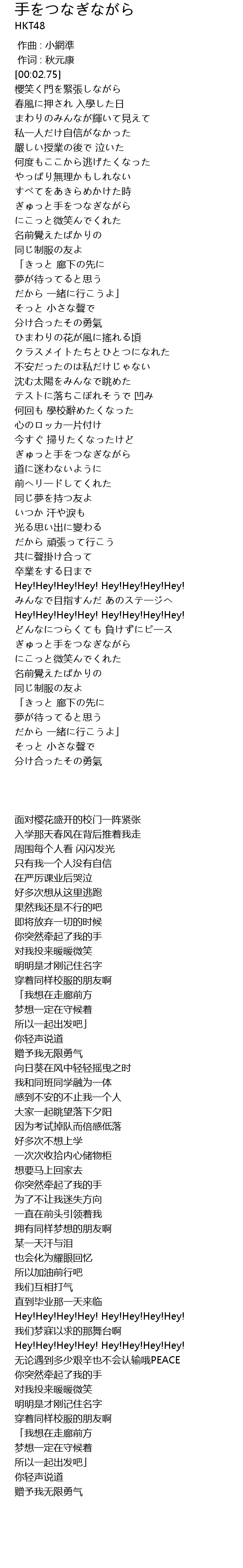 | [02:59.46] | Hey!Hey!Hey!Hey! Hey!Hey!Hey!Hey! |