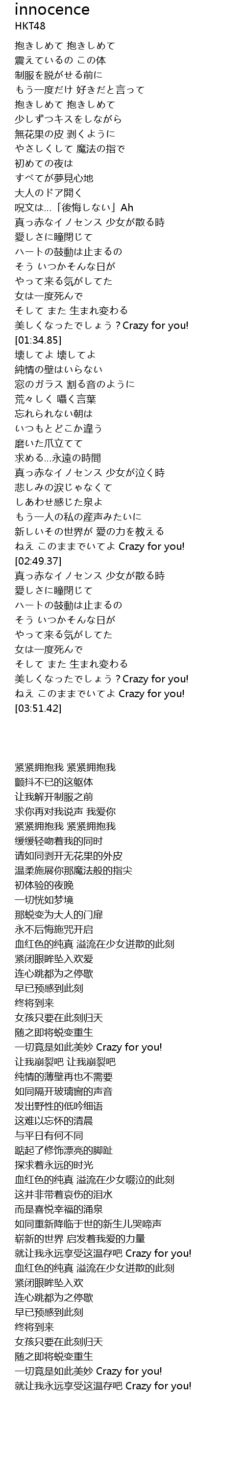 | [01:01.05] | 真っ赤なイノセンス 少女が散る時 |